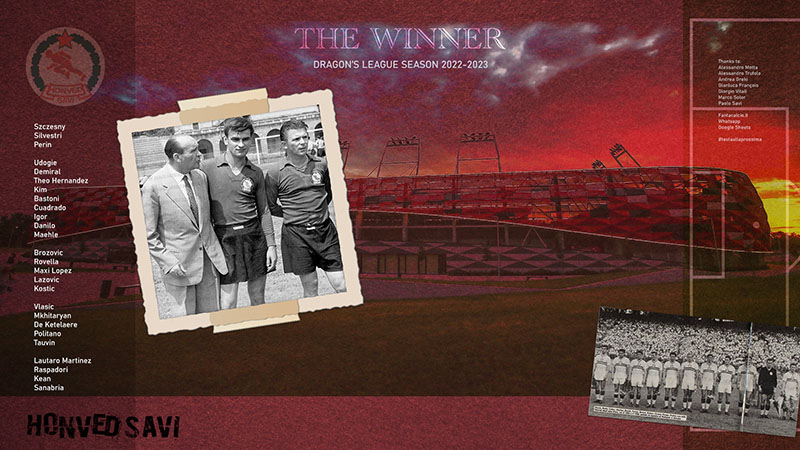 Se la aggiudica un Honved Savi che arriva al traguardo a fari spenti, forte di un andamento sempre piuttosto stabile e di un finale in crescendo che gli ha permesso il sorpasso alla penultima giornata. Pur non essendosi imposta come dominatrice del campionato, come accaduto in passato per altre squadre prime in classifica, la formazione allenata da Mr Saavij ha saputo mantenersi nella zona alta della classifica per tutta la stagione, per poi sferrare l’attacco alla vetta nel momento più propizio. Capitalizza il rendimento di un reparto offensivo che ha in Lautaro Martinez il mattatore e nel Sanabria del girone di ritorno una degna spalla, ma senza dimenticare un solido apporto difensivo. L’allenatore di Precotto miscela sapientemente le sue nobili origini calcistiche olandesi al pragmatismo della vecchia milano, sfornando una squadra propositiva ma mai ultraoffensiva, in cui la difesa a quattro è un credo quasi inamovibile. Ad impreziosire ulteriormente i risultati di quest’annata, si è aggiunta all’ultima giornata la vittoria della Coppa Dragon’s, che arriva al termine di tre partite estremamente combattute ed equilibrate (due semifinali vs Kendermore UTD e finale vs Trucastle Utd), a certificare che questa squadra – pur senza solisti di sangue nobile tranne forse il diez argentino – è una compagine di assoluto rispetto e di grande organizzazione tattica. Tra qualche oggetto misterioso (De Ketelaere su tutti, arrivato via QPM) e qualche scommessa vinta, l’impianto è solido e la prossima stagione, con pochi innesti, potrà confermare come l’ Honved sia la squadra da battere.